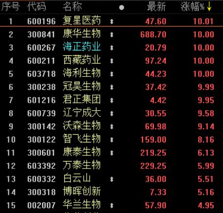 受上述利好提振,A股疫苗板塊周四再度走強。截至收盤,復星醫(yī)藥、康華生物(行情300841,診股)、海正藥業(yè)(行情600267,診股)、西藏藥業(yè)(行情600211,診股)、海利生物(行情603718,診股)、冠昊生物(行情300238,診股)、君正集團(行情601216,診股)等漲停,遼寧成大(行情600739,診股)、沃森生物(行情300142,診股)、智飛生物(行情300122,診股)等漲幅超8%。