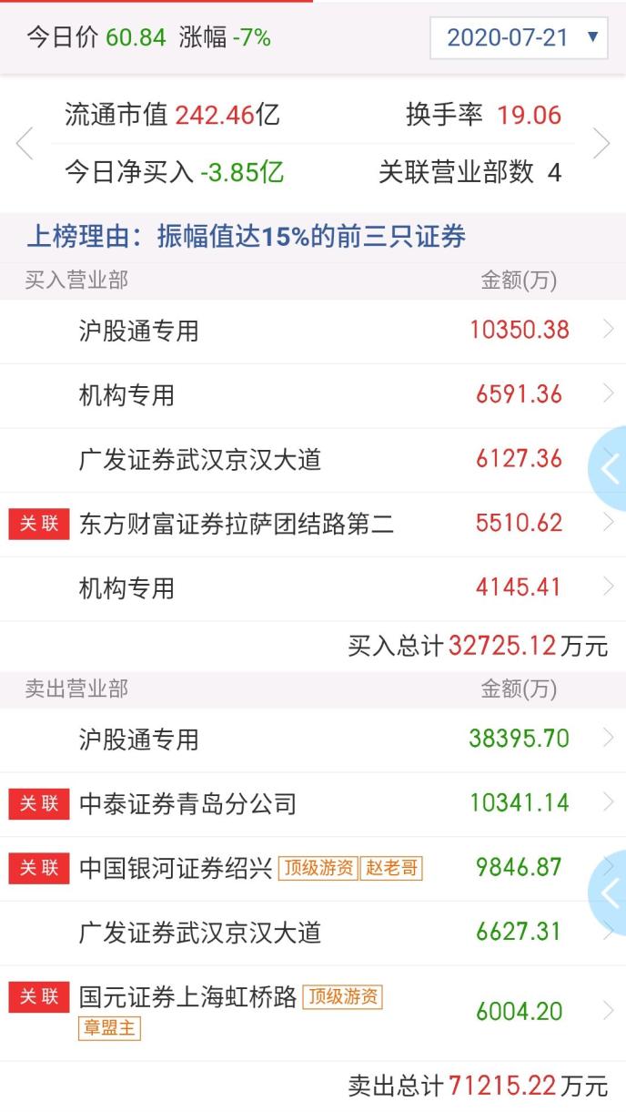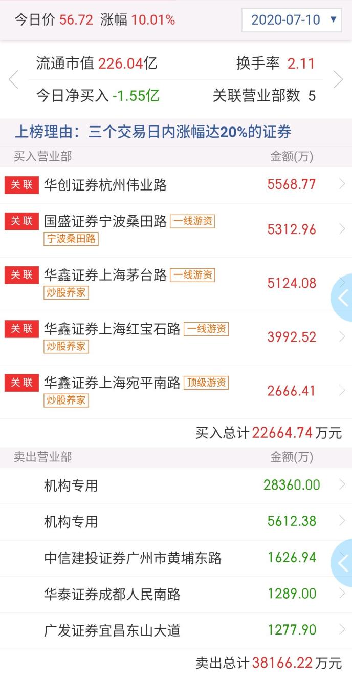 7月27日,這是6連板的首板,買二、買三均是游資席位,合計買入8000多萬元。7月28日,買方和賣方席位之中也出現(xiàn)知名游資席位;7月30日,買五的國泰君安(行情601211,診股)證券上海江蘇路是頂級游資席位。
