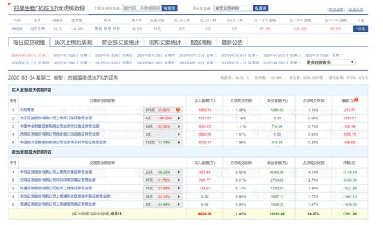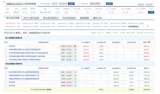 西藏藥業(yè)近一月漲幅達(dá)122.2%,7次上榜龍虎榜,周二買入榜一為機(jī)構(gòu)席位,凈買入6364.54萬元,賣出榜4、5位也均為機(jī)構(gòu)席位,分別凈賣出7986.14萬元、7524.65萬元。買入前5名與賣出前5名的合計(jì)凈額達(dá)-3.05億,知名游資國元證券(行情000728,診股)上海虹橋路營業(yè)部大舉出貨。