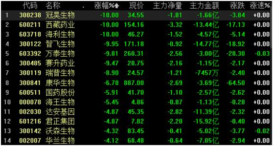 盤后資金面來看,整個醫(yī)藥生物行業(yè)主力資金凈流出規(guī)模超過170億元。盤后龍虎榜顯示,西藏藥業(yè)、正川股份(行情603976,診股)、冠昊生物、三鑫醫(yī)療(行情300453,診股)、貝瑞基因(行情000710,診股)、豐原藥業(yè)(行情000153,診股)、易明醫(yī)藥(行情002826,診股)等均登上龍虎榜。