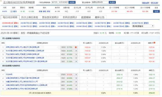 另一疫苗題材龍頭正川股份近一月漲幅達(dá)140.50%,15次上榜龍虎榜,周二賣出榜首位為機(jī)構(gòu)席位,凈賣出3202.18萬元。買入前5名與賣出前5名的合計(jì)凈額達(dá)-4162.03萬元。