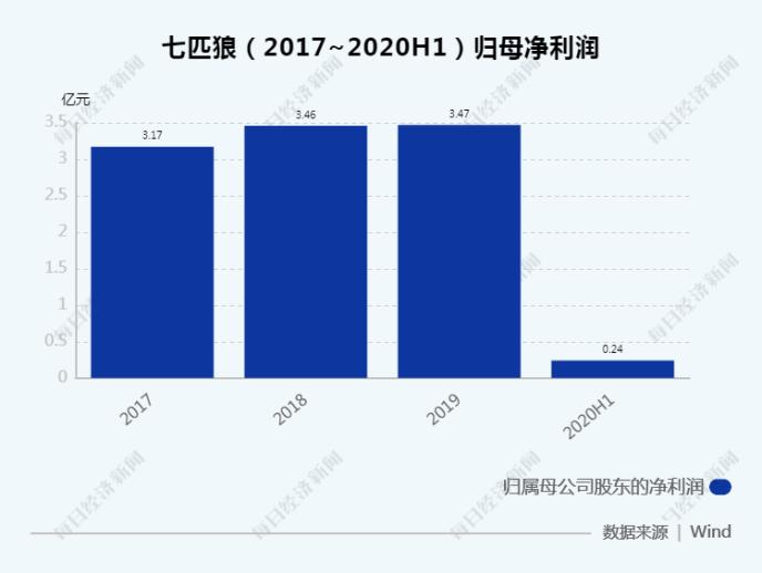 七匹狼2020年上半年歸屬于上市公司股東的凈利潤約為2424萬元,同比下降80.36%;營業(yè)收入約為13.54億元,同比下降12.93%。