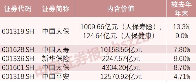 衡量保險(xiǎn)股潛力的另一大指標(biāo)——內(nèi)含價(jià)值方面,五大險(xiǎn)企均實(shí)現(xiàn)增長。截至上半年末,中國人壽內(nèi)含價(jià)值首次超過萬億元大關(guān),達(dá)10158.56億元,較上年末增長7.8%。新華保險(xiǎn)(行情601336,診股)內(nèi)含價(jià)值達(dá)到2247.57億元,較上年末增長9.6%。中國太保內(nèi)含價(jià)值4304.20億元,較上年末增長8.7%。人保壽險(xiǎn)內(nèi)含價(jià)值1009.66億元,較上年末增長13.3%,人保健康內(nèi)含價(jià)值124.64億元,較上年末增長9.0%。中國平安集團(tuán)內(nèi)含價(jià)值12570.92億元,較上年末增長4.71%。