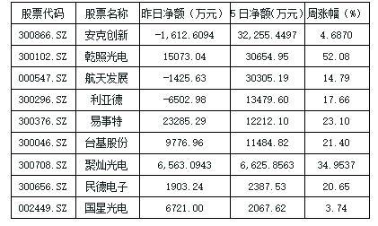 本周氮化鎵概念大單凈流入前十:
