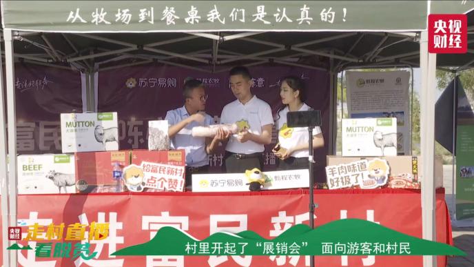 在村里熱鬧的展銷會上,村民售賣起自家的特產(chǎn)。蘇寧易購(行情002024,診股)還在現(xiàn)場開起直播間,甘青寧蘇寧易購總經(jīng)理陳昌海還現(xiàn)場羊肉帶貨,進(jìn)行售賣。直播間重點(diǎn)售賣當(dāng)?shù)氐呐Q蛉庖约把苌?、火鍋底料、牛肉醬、辣椒醬、指頭面等有地方特色產(chǎn)品。據(jù)陳昌海介紹,已規(guī)劃在武威古浪開設(shè)蘇寧易購中華特色館古浪館,中華特色館是立足于解決農(nóng)產(chǎn)品(行情000061,診股)上行的扶貧模式,通過為農(nóng)村地區(qū)優(yōu)質(zhì)農(nóng)產(chǎn)品打開上行渠道,幫助農(nóng)戶打開銷售渠道,幫助農(nóng)產(chǎn)品觸網(wǎng)新生,依托蘇寧全渠道優(yōu)勢將當(dāng)?shù)氐膬?yōu)質(zhì)的農(nóng)產(chǎn)品送到全國消費(fèi)者的餐桌。