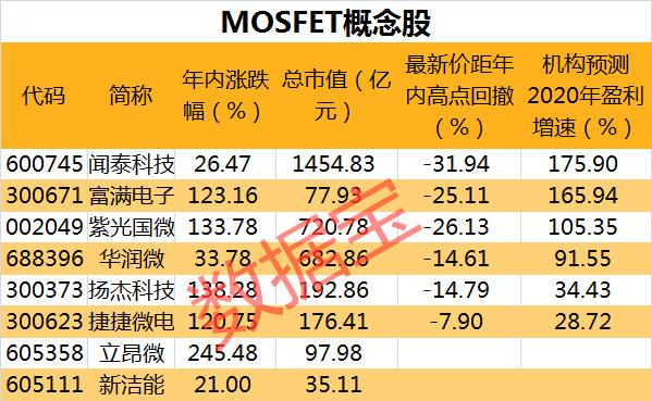 證券時報·數(shù)據(jù)寶統(tǒng)計顯示,8只MOSFET概念股上半年均實現(xiàn)盈利,其中聞泰科技、華潤微、紫光國微(行情002049,診股)和富滿電子歸母凈利潤增速均超100%。從機構(gòu)預(yù)測的2020年凈利潤增速看,聞泰科技、富滿電子和紫光國微均將實現(xiàn)翻倍式增長。