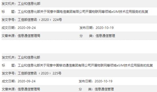 消息面上,工信部1019日發布批復文件,同意中國移動、中國電信開展物聯網等領域eSIM技術應用服務。服務僅限開通數據業務和與之相關的定向話音、定向短信業務。