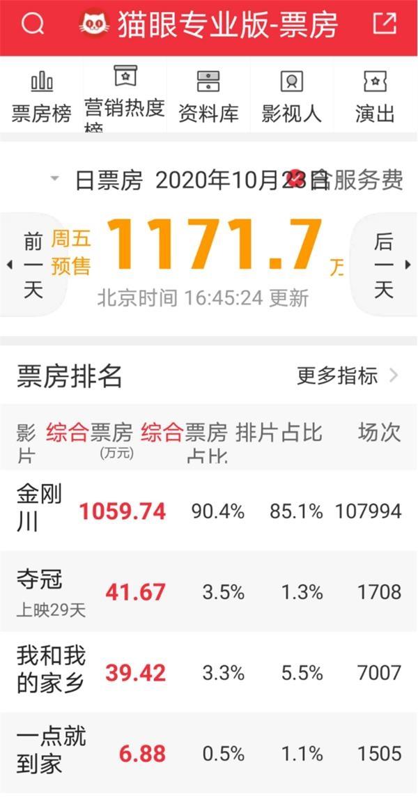 目前,影片已正式開啟全國預售,截至發稿,據貓眼數據顯示,《金剛川》首日預售已超千萬,位列預售榜第一,10月23日《金剛川》排片超10萬場,占當日排片的比例超過85%,火爆程度可見一斑。