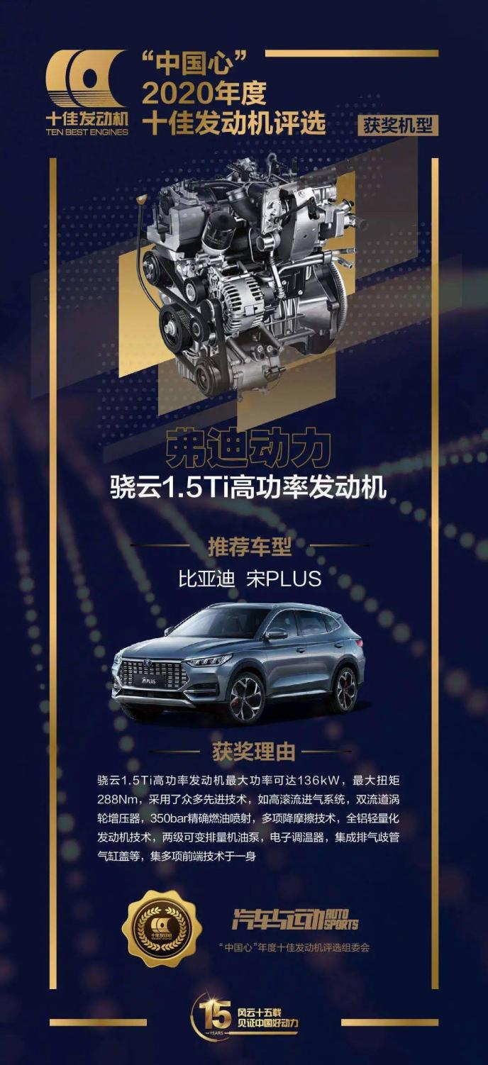 厚積薄發!弗迪動力驍云1.5TI高功率發動機榮獲“中國心”十佳發動機獎項