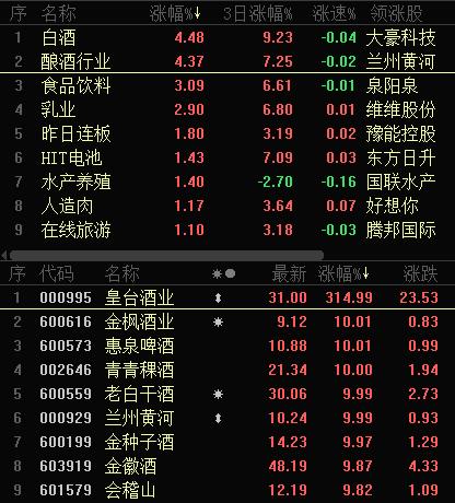 A股低迷之際,釀酒行業(yè)再度崛起,截至今日收盤,金楓酒業(yè)(行情600616,診股)、惠泉啤酒(行情600573,診股)、青青稞酒(行情002646,診股)、老白干酒(行情600559,診股)、蘭州黃河(行情000929,診股)、金種子酒(行情600199,診股)、金徽酒(行情603919,診股)等紛紛漲停,會稽山(行情601579,診股)、古越龍山(行情600059,診股)等盤中觸及漲停。除此之外,大豪科技(行情603025,診股)因紅星股份借殼已經連續(xù)7個交易日一字漲停,皇臺酒業(yè)(行情000995,診股)恢復上市的因首日不受漲跌幅限制暴漲315%,兩只個股的火爆行情亦對板塊的炒作情緒產生了“火上澆酒”的作用。