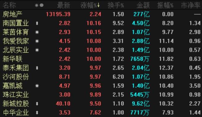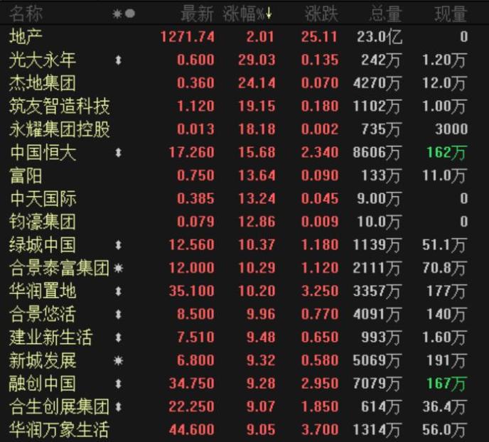 在南國(guó)置業(yè)(行情002305,診股)預(yù)告2020年度業(yè)績(jī)扭虧之后,股價(jià)連續(xù)5個(gè)漲停,徹底引燃了沉寂許久的房地產(chǎn)股做多熱情。周二房地產(chǎn)板塊指數(shù)逆市放量大漲2.24%,我愛(ài)我家(行情000560,診股)、中房股份(行情600890,診股)、北辰實(shí)業(yè)(行情601588,診股)、沙河股份(行情000014,診股)等漲停。港股房地產(chǎn)板塊周二也大幅拉升,恒生地產(chǎn)指數(shù)漲4.12%,其中細(xì)分的恒生內(nèi)地地產(chǎn)指數(shù)一度暴漲近9%,中國(guó)恒大飆升15.68%,綠城中國(guó)、合景泰富集團(tuán)、華潤(rùn)置地等均大幅拉升超10%。