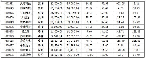 其中,華燦光電(行情300323,診股)、上海貝嶺(行情600171,診股)、*ST雪萊(行情002076,診股)、歐比特(300053)、泰晶科技(603738)、科力遠(行情600478,診股)、得潤電子(002055)、三利譜(行情002876,診股)、大立科技(002214)、鴻利智匯(行情300219,診股)、東尼電子(行情603595,診股)、惠倫晶體(行情300460,診股)等12家公司有望實現(xiàn)業(yè)績同環(huán)比增長均超過100%,顯示了行業(yè)的持續(xù)向好態(tài)勢。