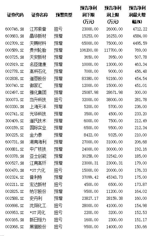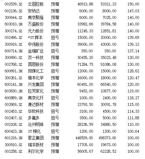 預(yù)告年報(bào)凈利同比翻番的化工類(lèi)上市公司